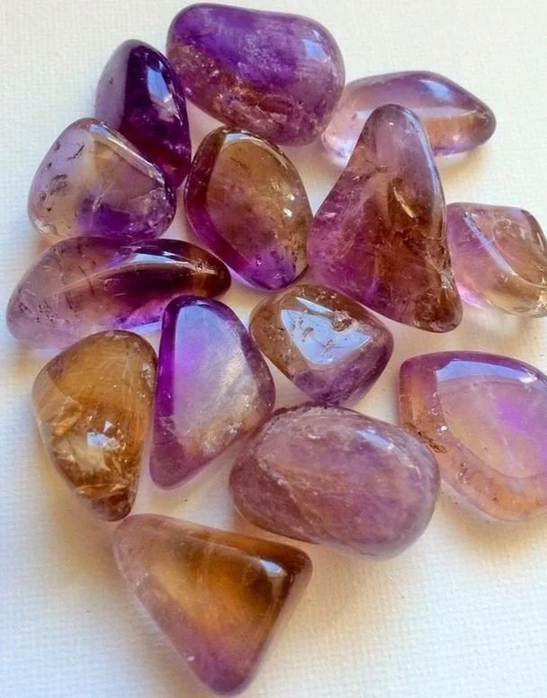 Properties: Combines the mental clarity of Citrine with the spiritual depth of Amethyst. Boosts creativity and spiritual alignment.